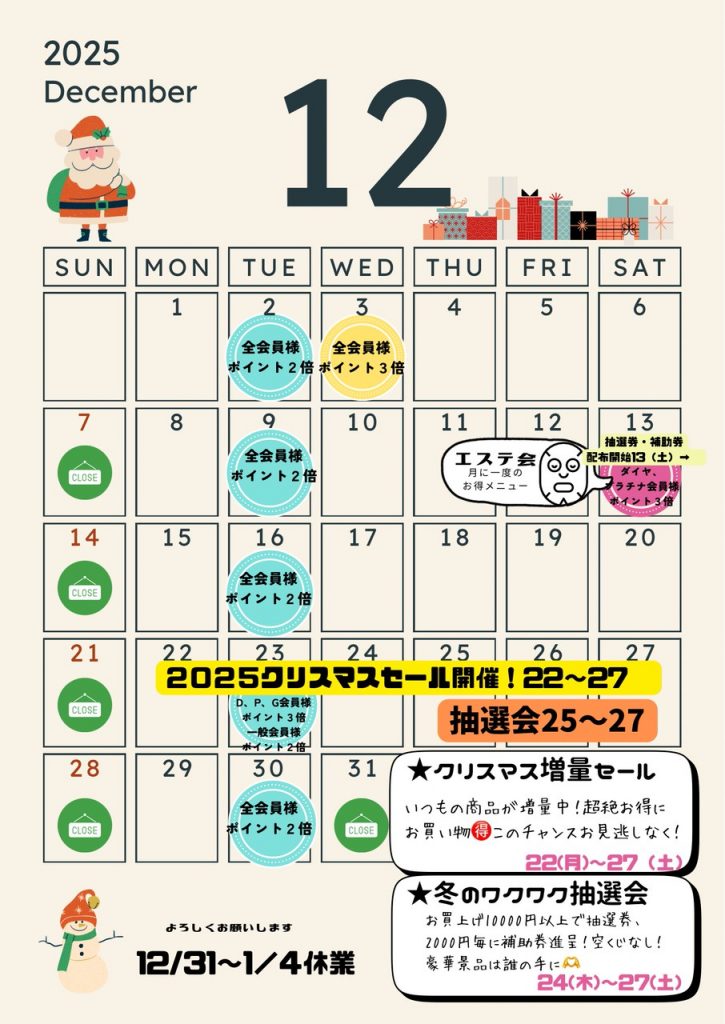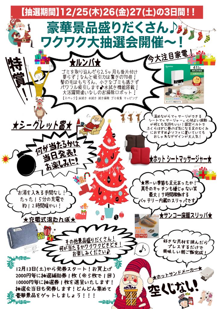 お買上げ10000円毎に抽選券1枚進呈!2000円毎に1枚進呈(5枚で1回抽選)